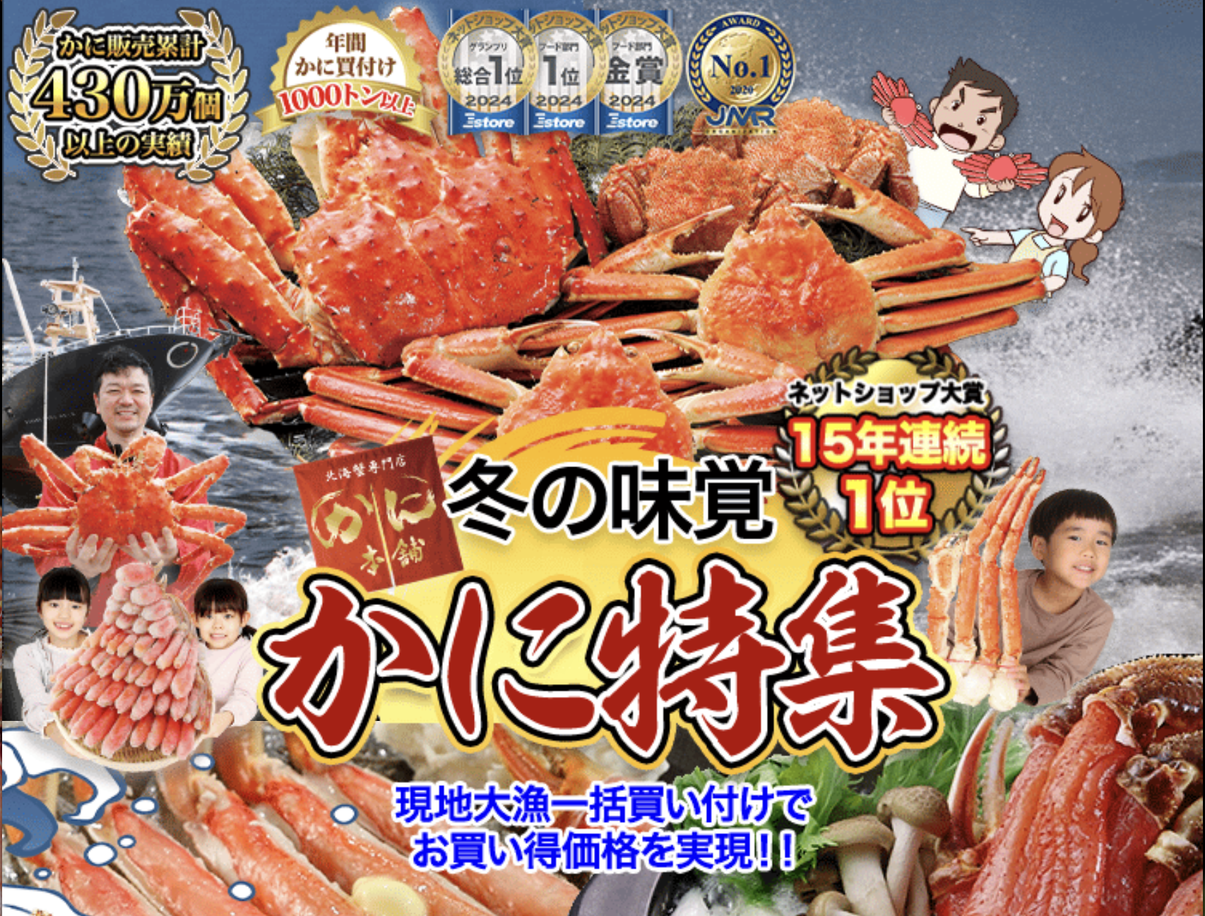 数ある通販サイトの中でも、圧倒的な人気と実績を誇るのが【かに本舗】。