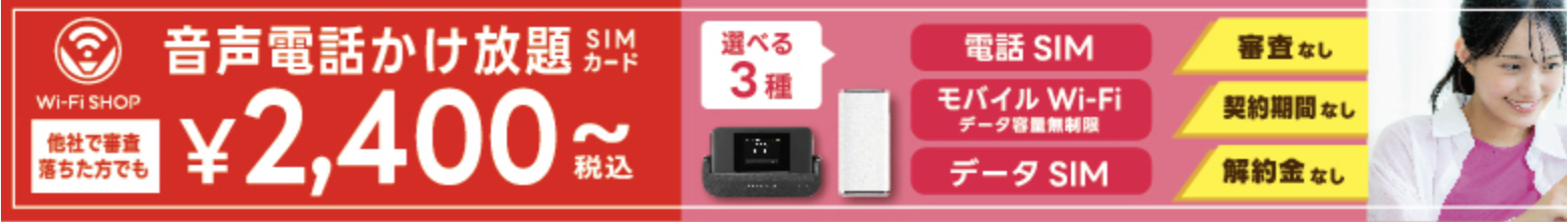 Wi-Fi SHOPは、無制限ポケットWi-Fiと審査不要の音声SIMを、誰でも気軽に使える形で提供しています。