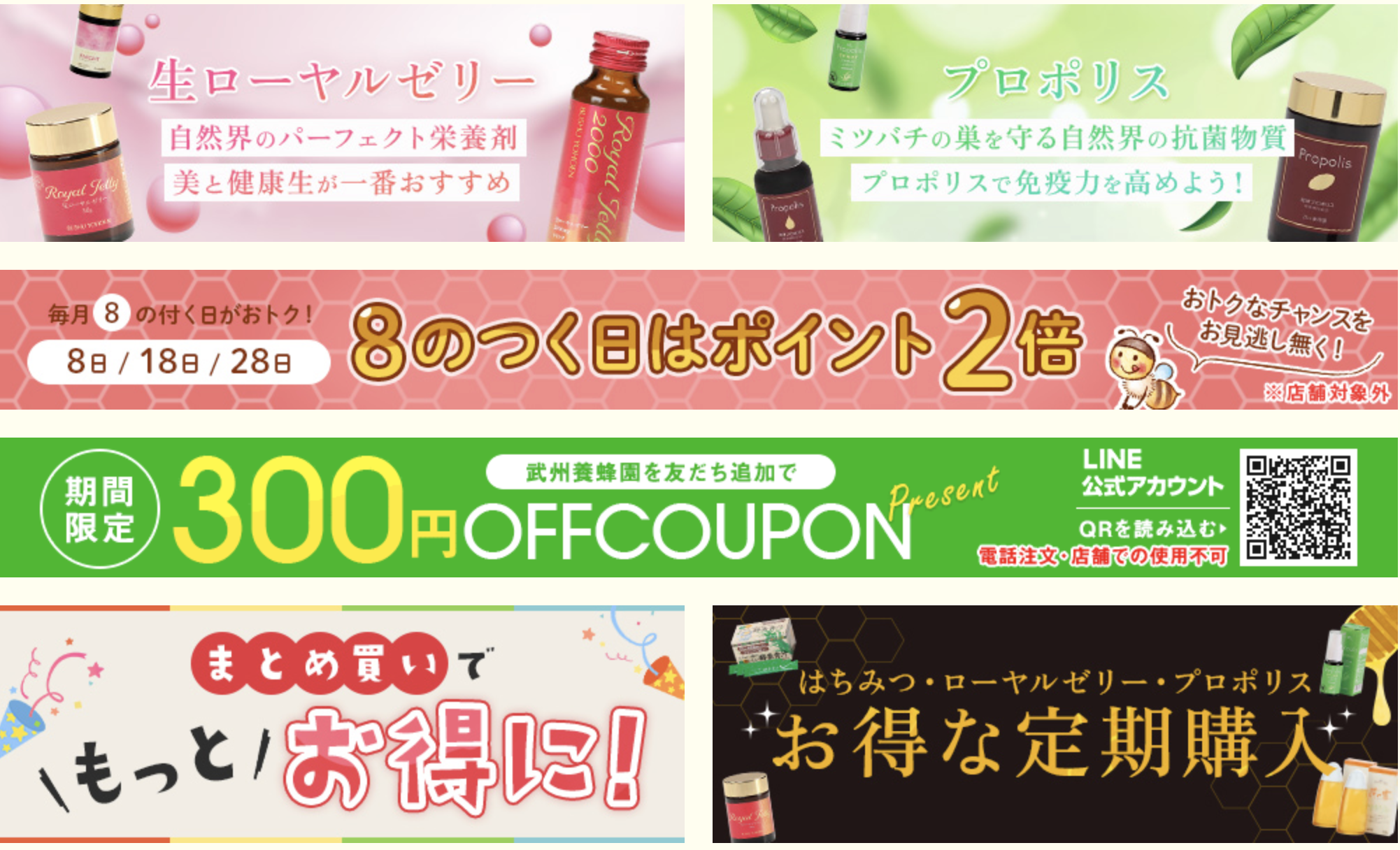 プロポリス、ローヤルゼリーなど“健康系はちみつ”も選べる。