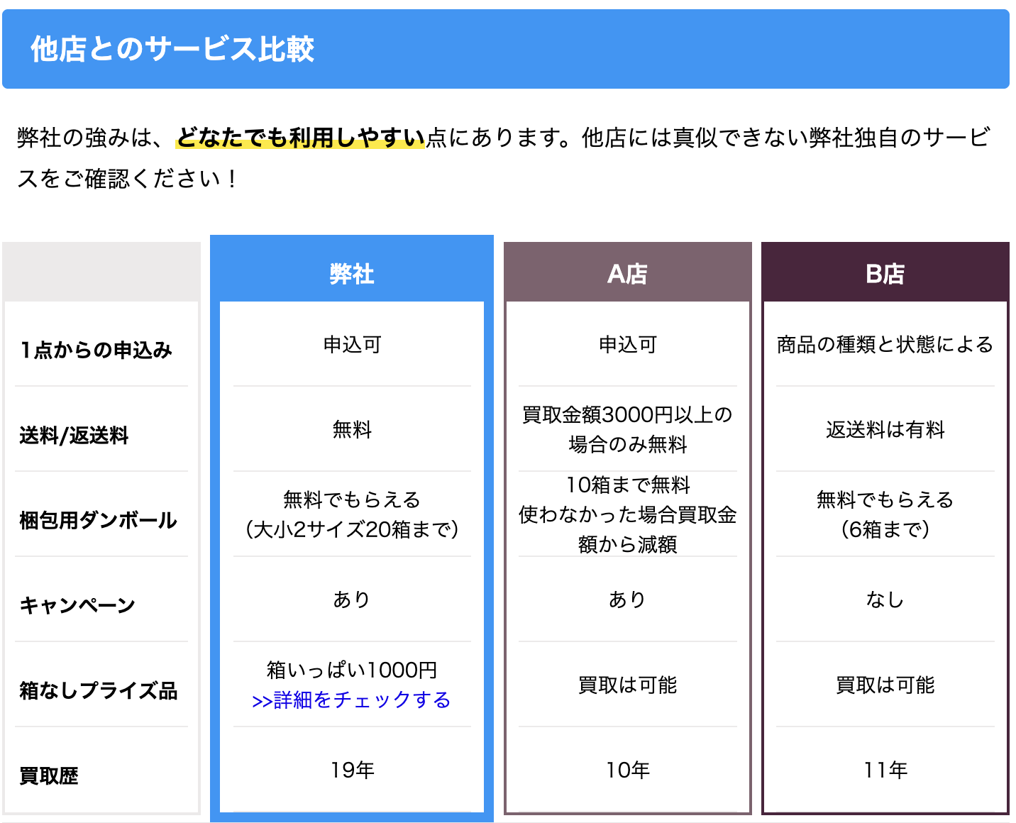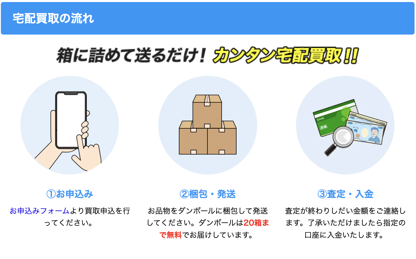 無料で梱包セット(ダンボールなど)を自宅まで発送してくれるため、 手元に何もなくてもすぐに申し込みできます。