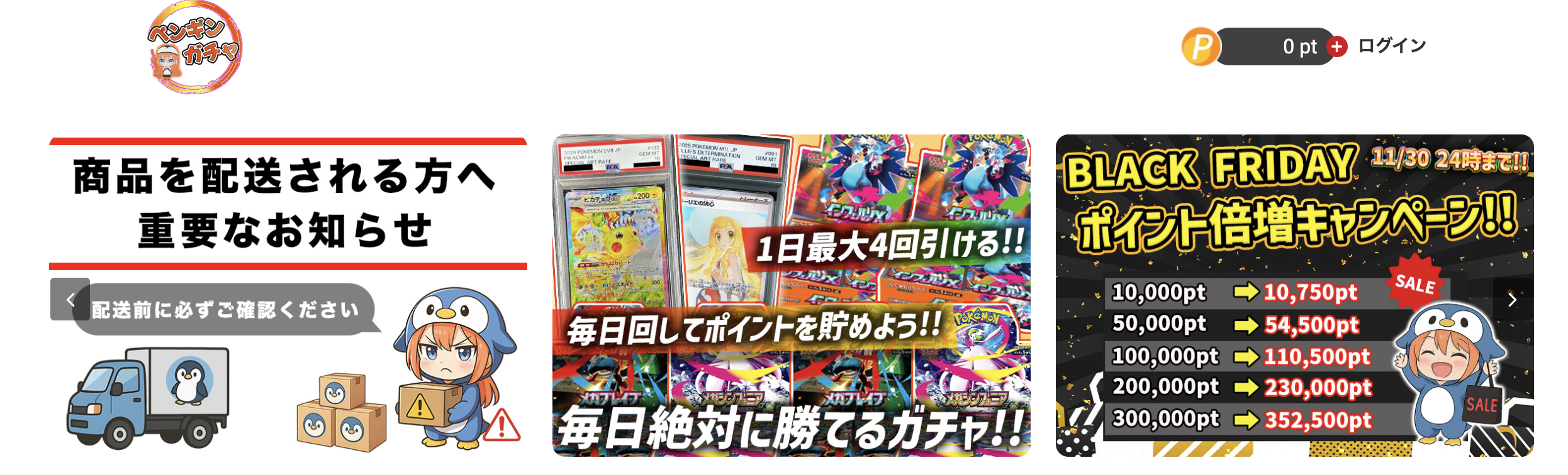 ポケカ、ワンピなどの高還元ガチャ多数。ネットオリパなら【ペンギンガチャ】
