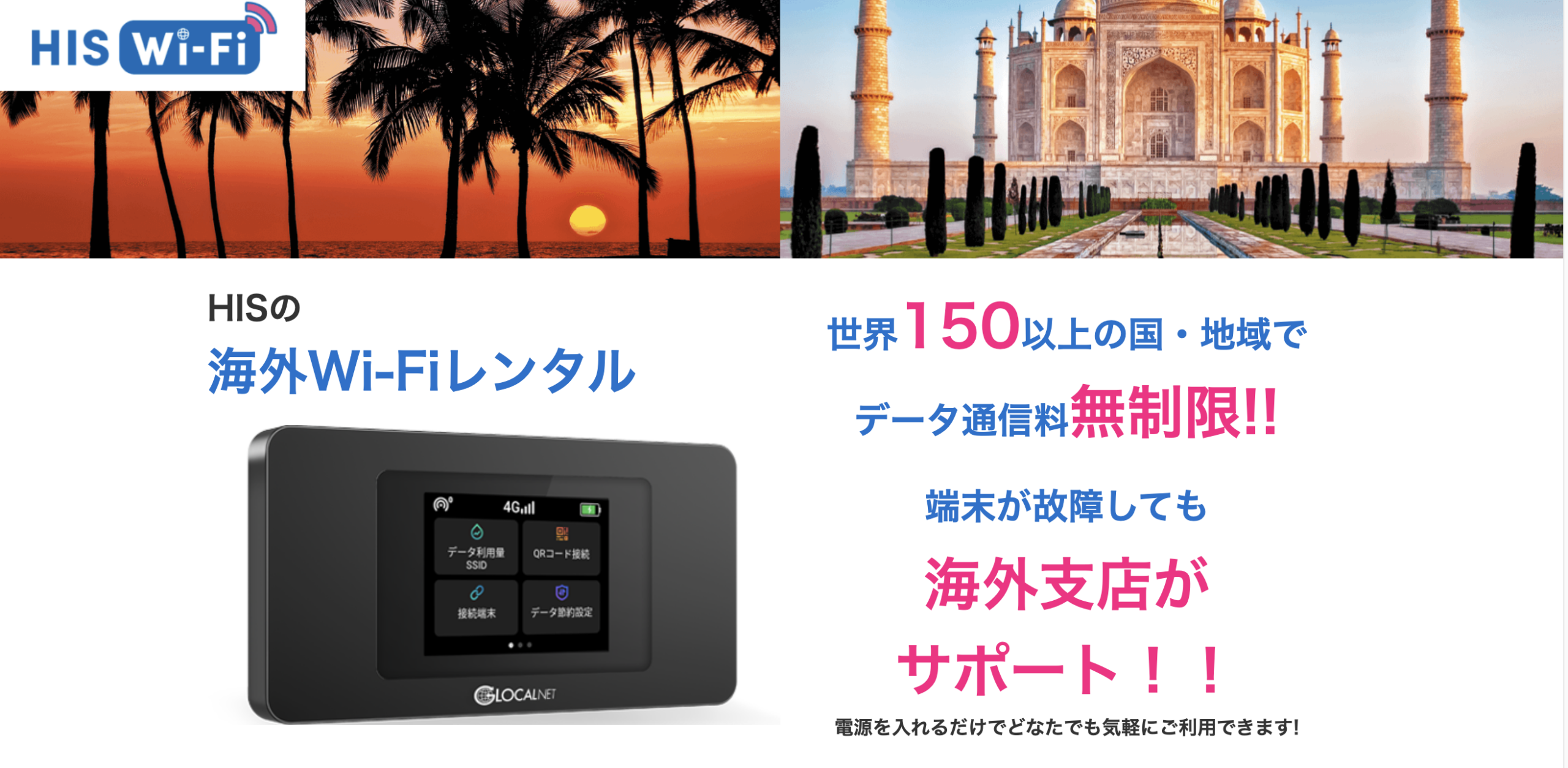 安心のHISブランド、徹底した品質管理、24時間体制のサポート、そして低価格の無制限プラン。