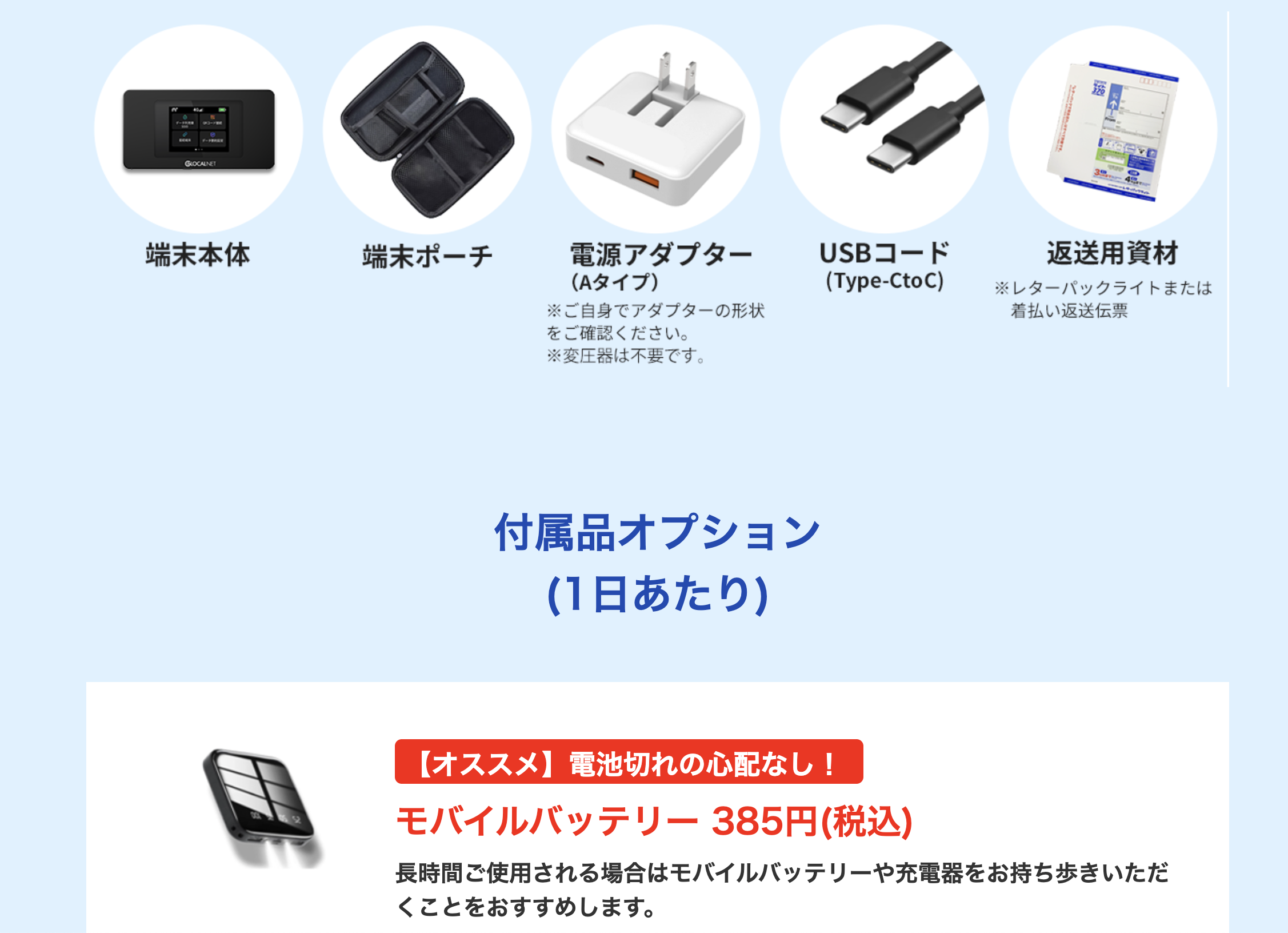などの便利なオプションも同時にレンタル可能です。