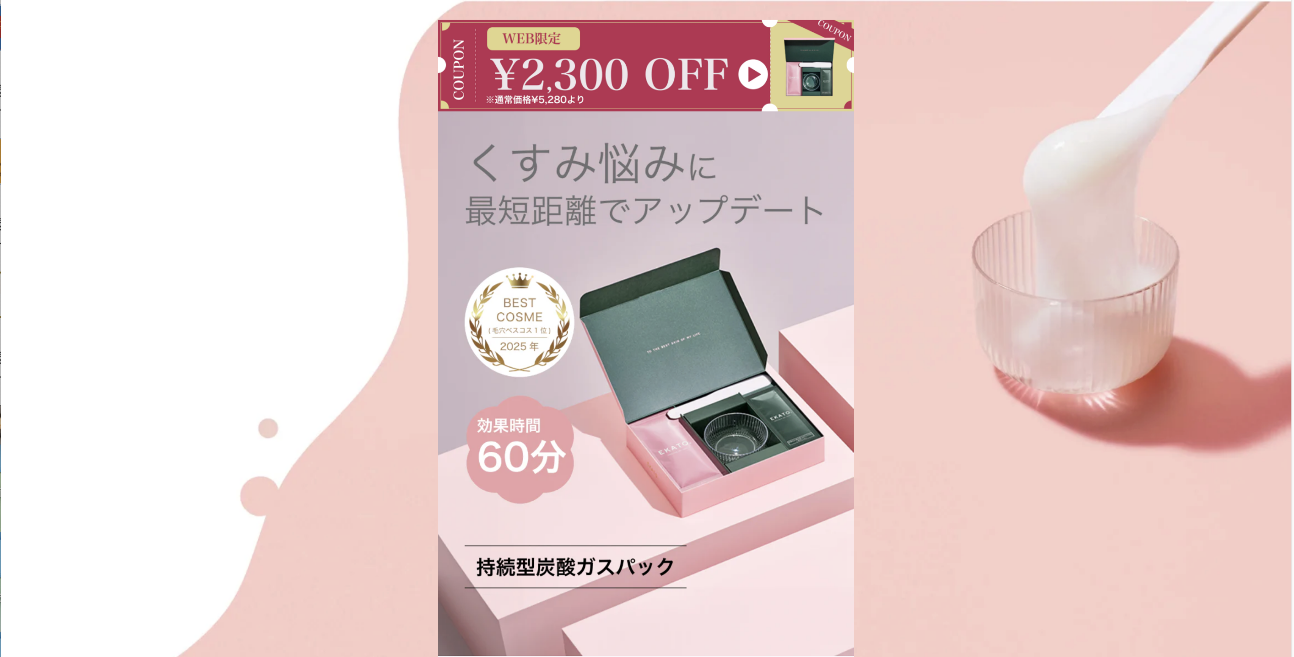 スターターキットに含まれる美容機器と、専用の炭酸ガスパックが相乗効果を発揮することで、自宅にいながらサロン級ケアが可能になります。