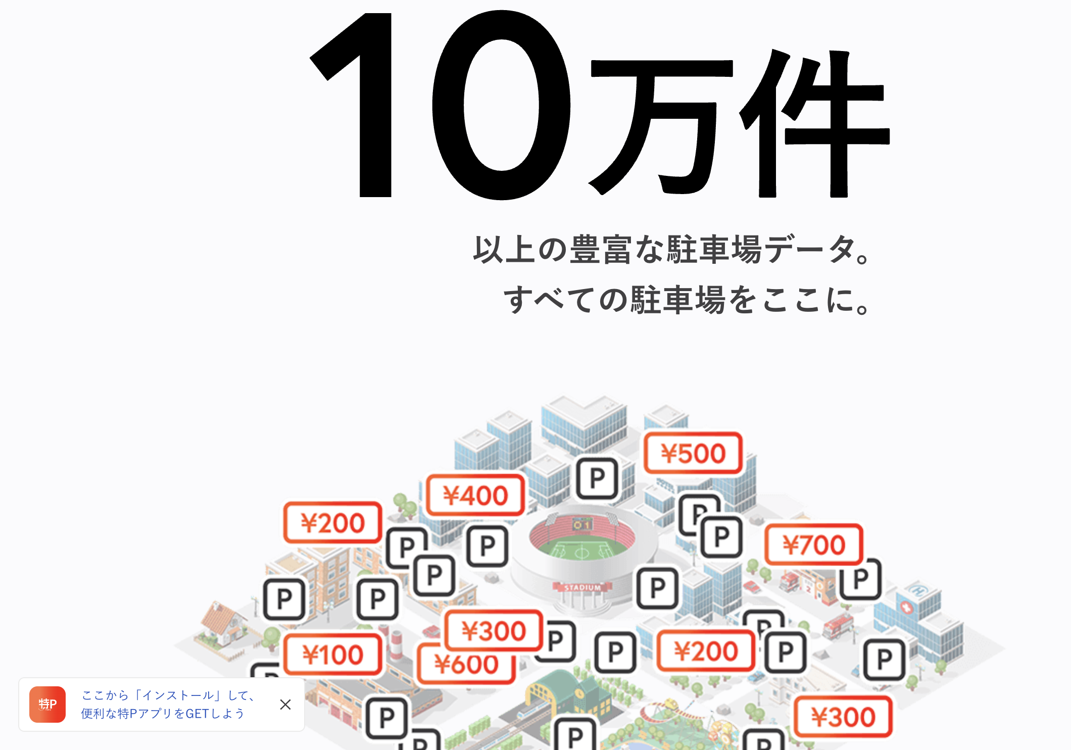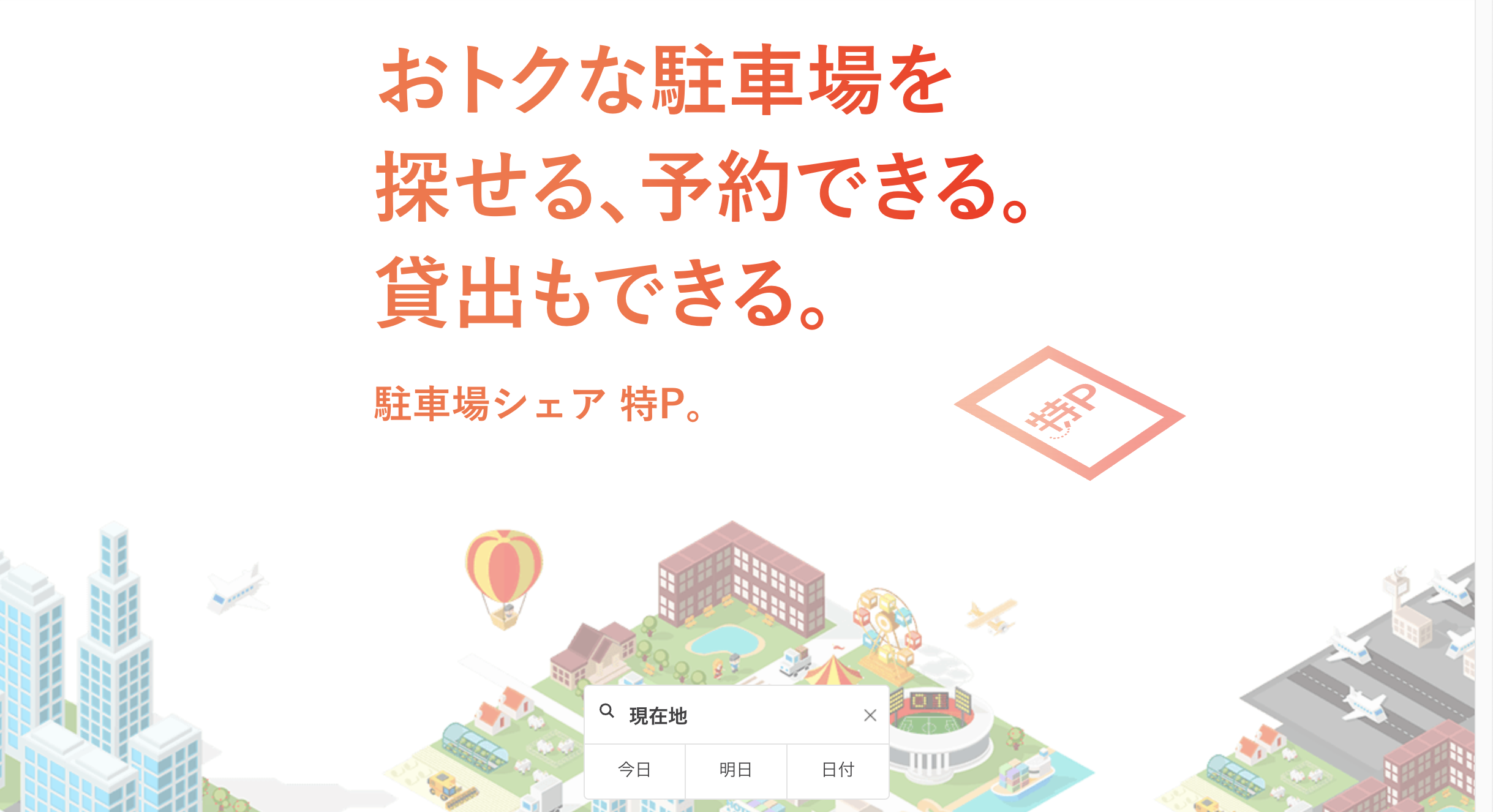 特Pは、目的地周辺の駐車場を検索して、事前に予約できるサービス。週末やイベント時など「着いてから探すと時間が読めない」場面でも、停める場所を先に確保してから出発できるのが強み。
