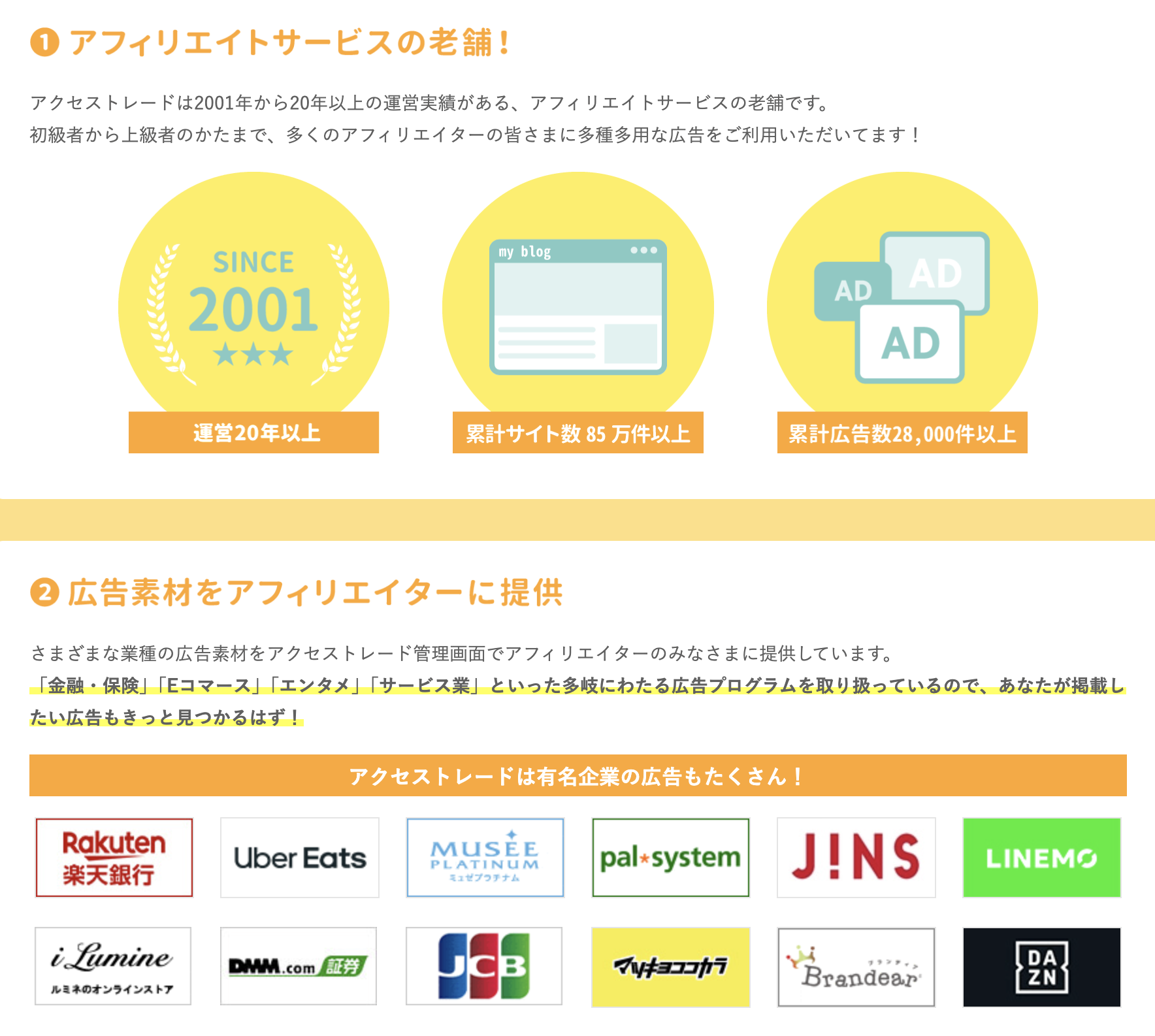 アクセストレードは、広告主とパートナーサイト(媒体)をつなぐアフィリエイトサービス。