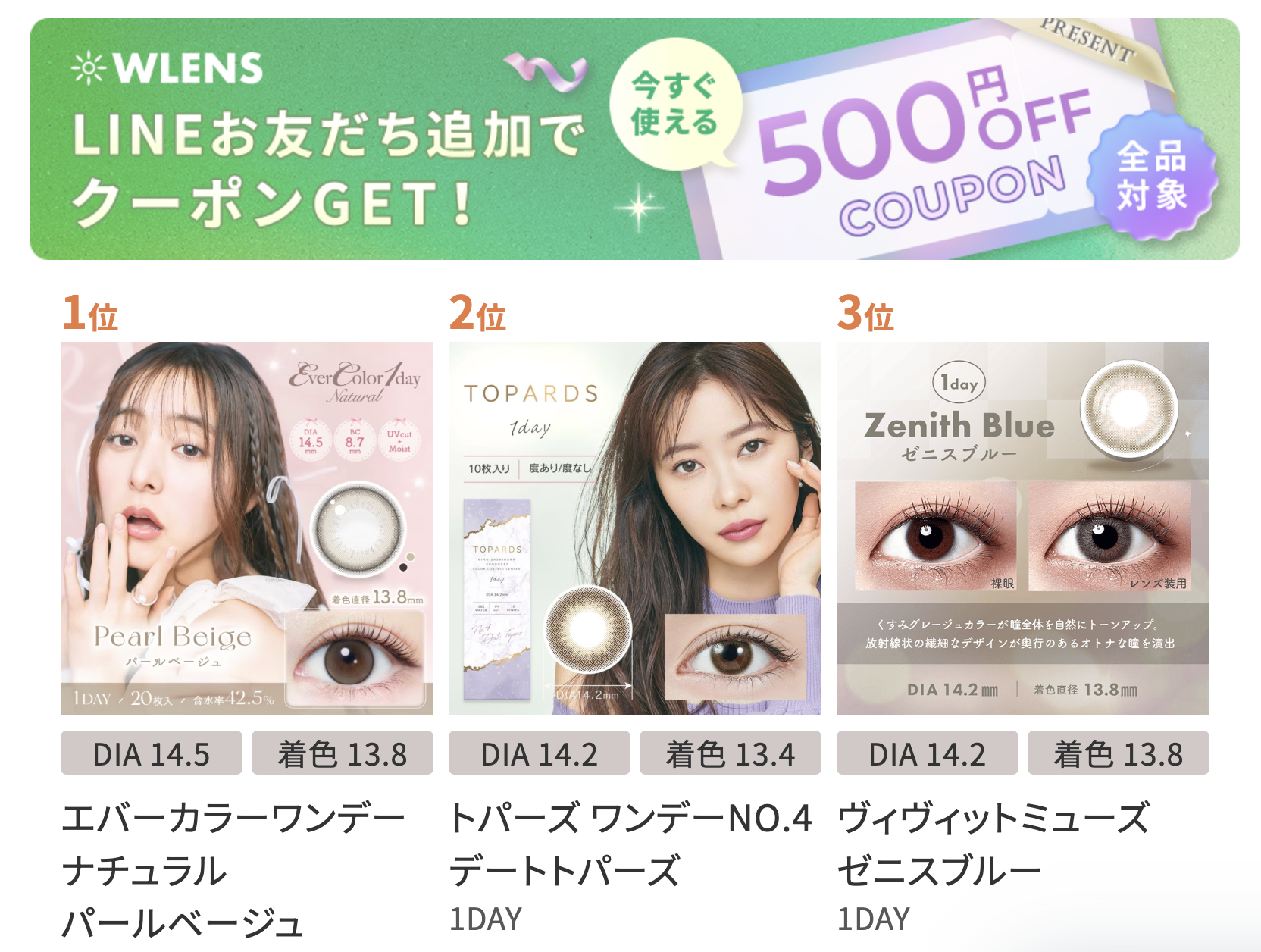 有名メーカー品だけでなく、高品質ながら低価格を実現した独自ブランド「WAVE」を展開しています。性能と価格のバランスを重視するユーザーから高い評価を得ており、月々のコンタクト代を大幅に節約することが可能です。