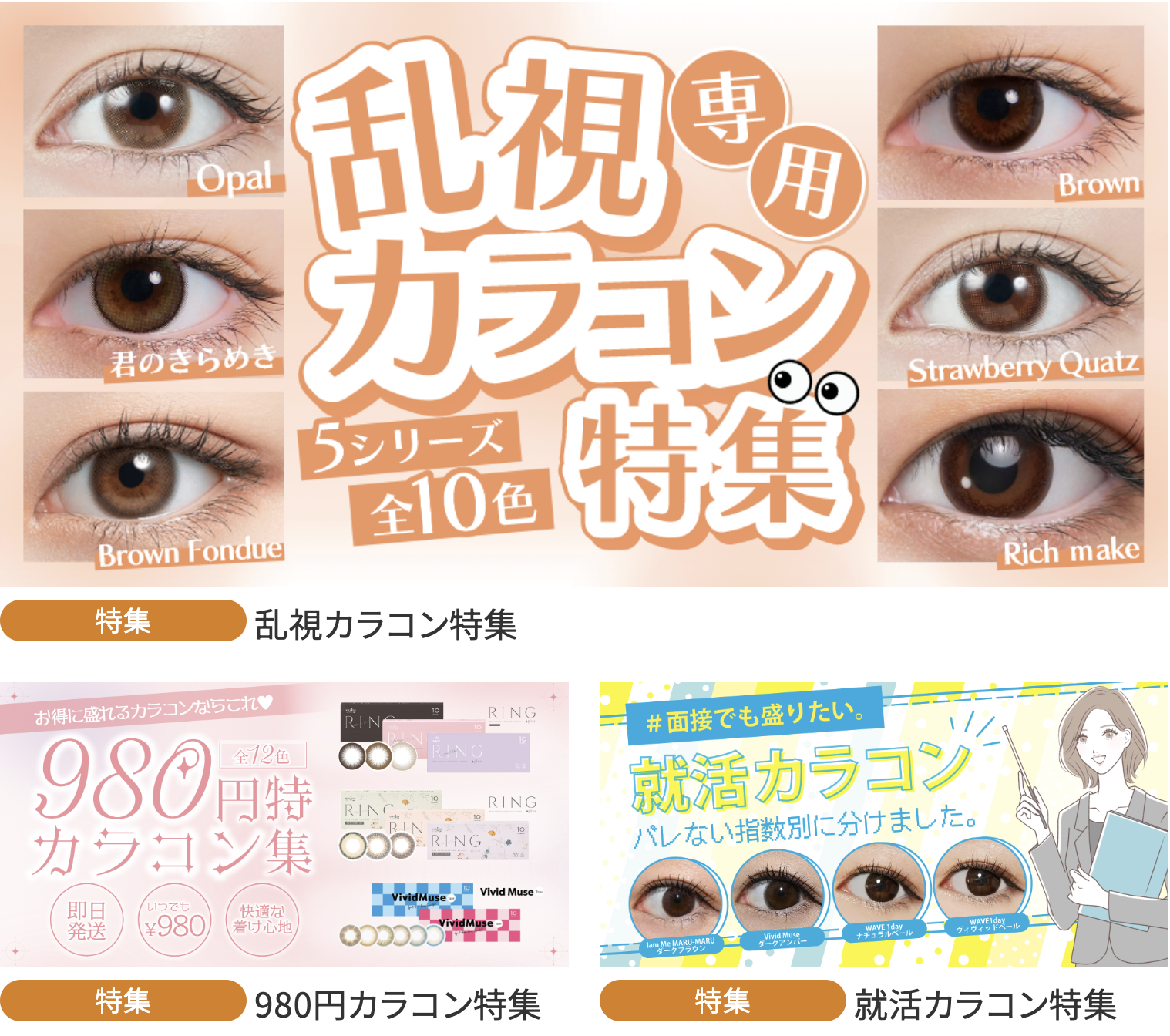 ジョンソン・エンド・ジョンソンの「アキュビュー」シリーズをはじめ、アルコン、ボシュロム、シードなど、主要メーカーの製品がほぼすべて網羅されています。1日使い捨て(ワンデー)、2週間使い捨て(2ウィーク)、乱視用、遠近両用、カラーコンタクトレンズまで、自分の目に合ったレンズを簡単に見つけることができます。