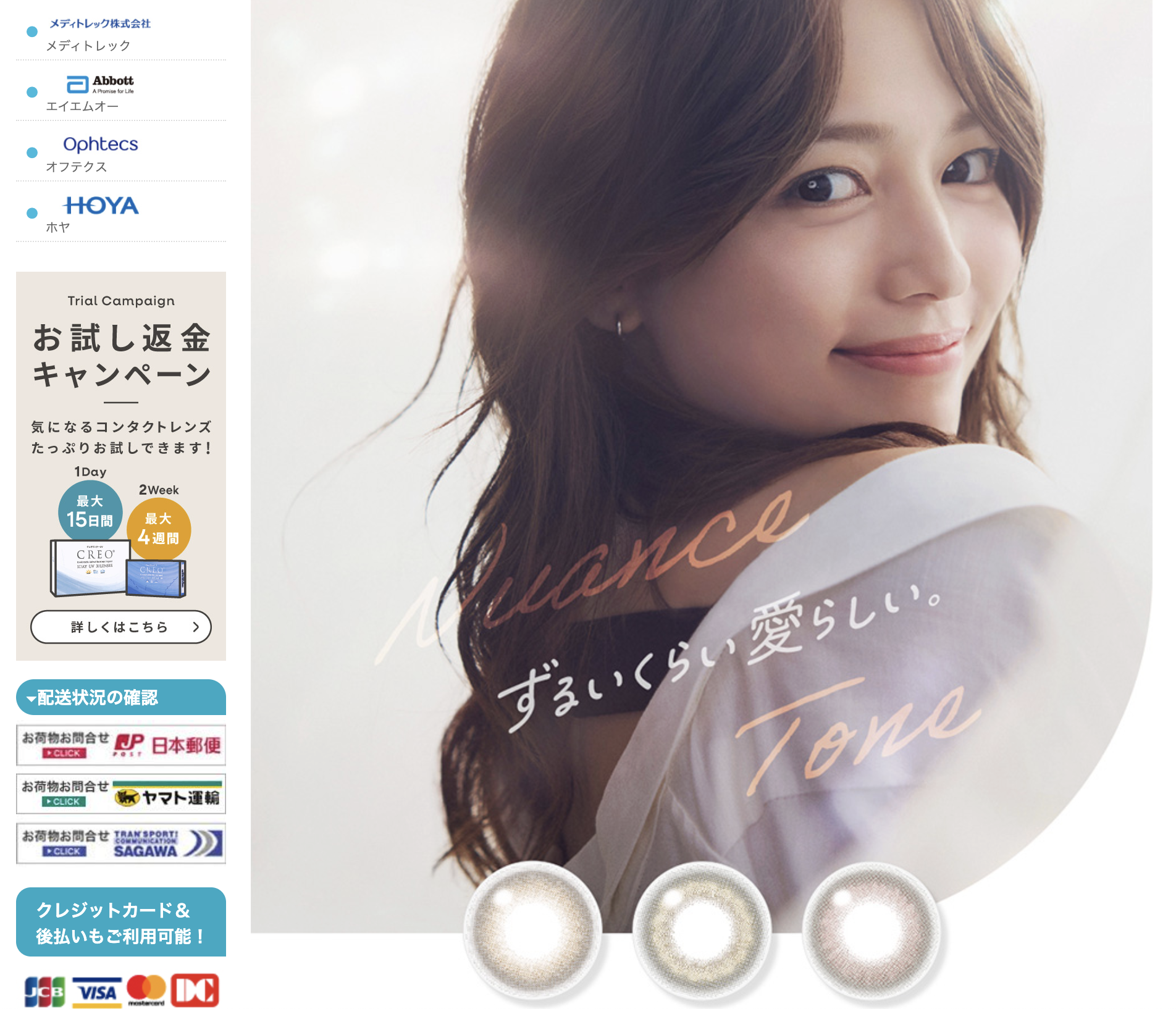 ジョンソン・エンド・ジョンソン、アルコン、ボシュロム、シードといった世界的な主要メーカーの製品が幅広くラインナップされています。ワンデー、2ウィーク、マンスリーといった使用期間別はもちろん、乱視用や遠近両用などの特殊レンズも豊富に在庫を確保しています。