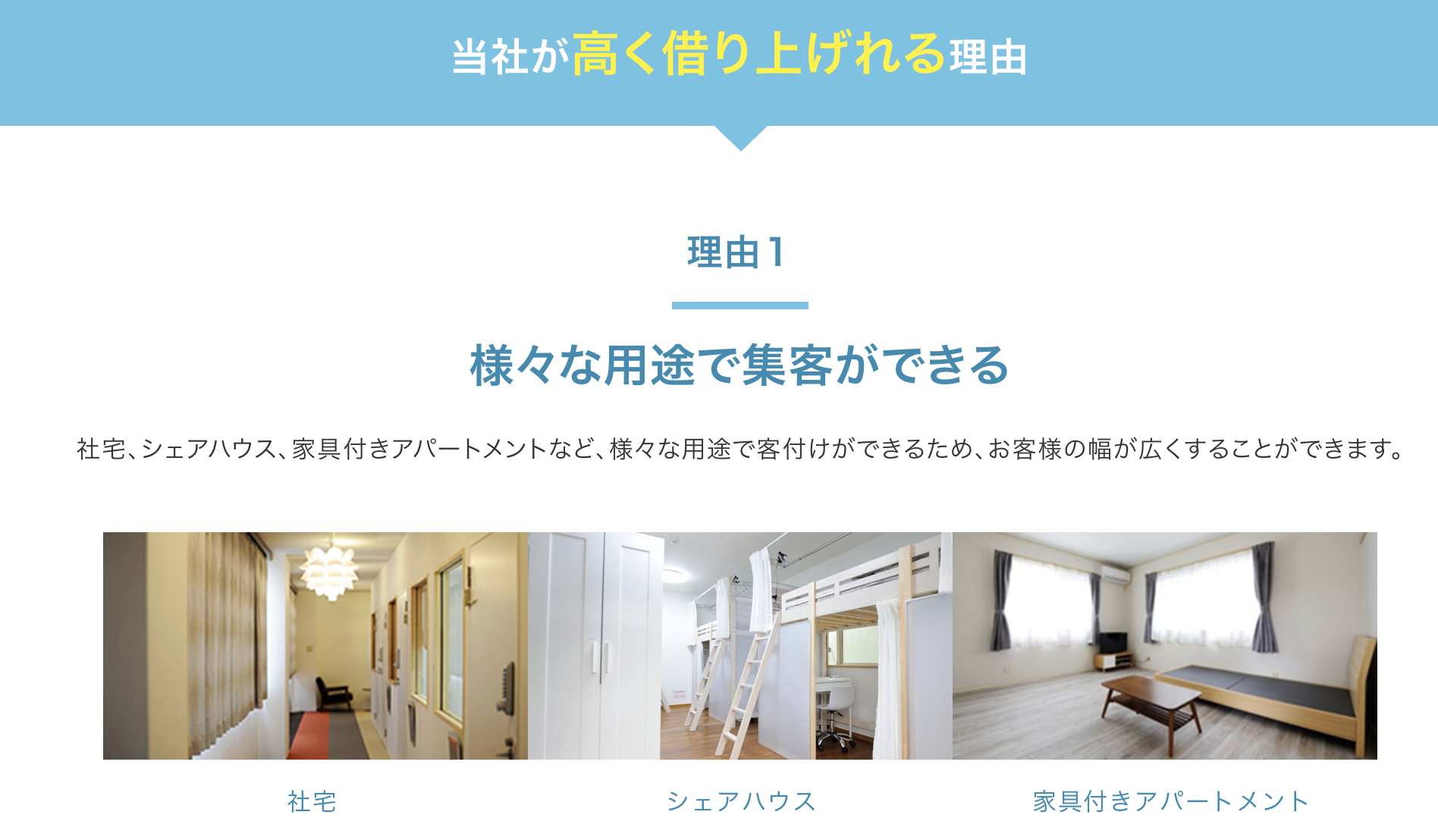 1. シェアハウス・サブリースへの転用による高い稼働率