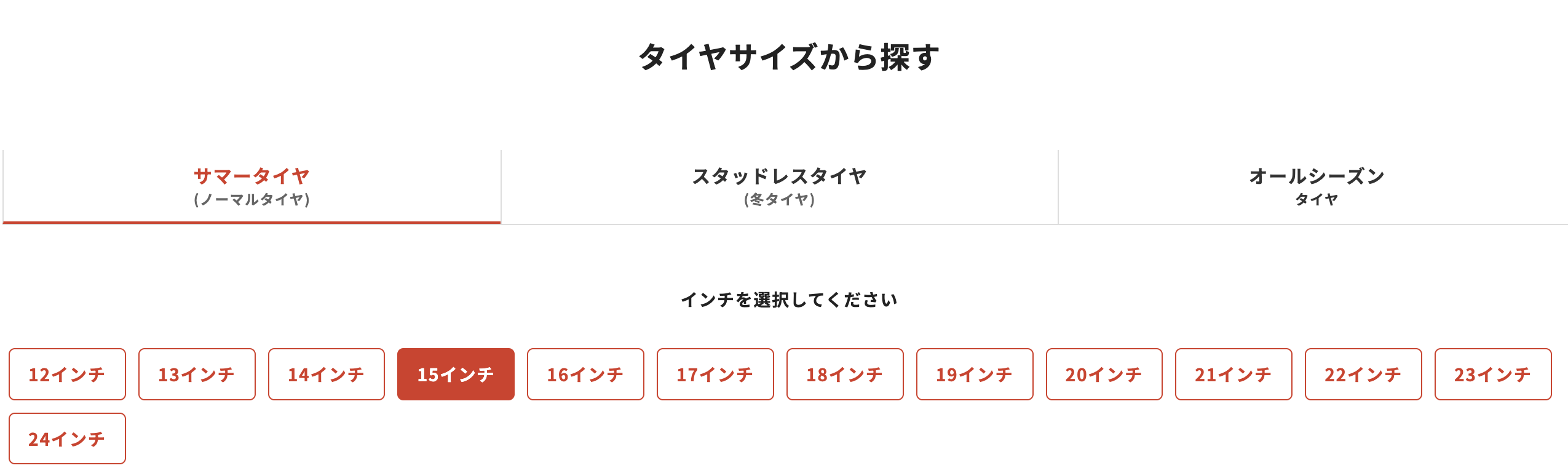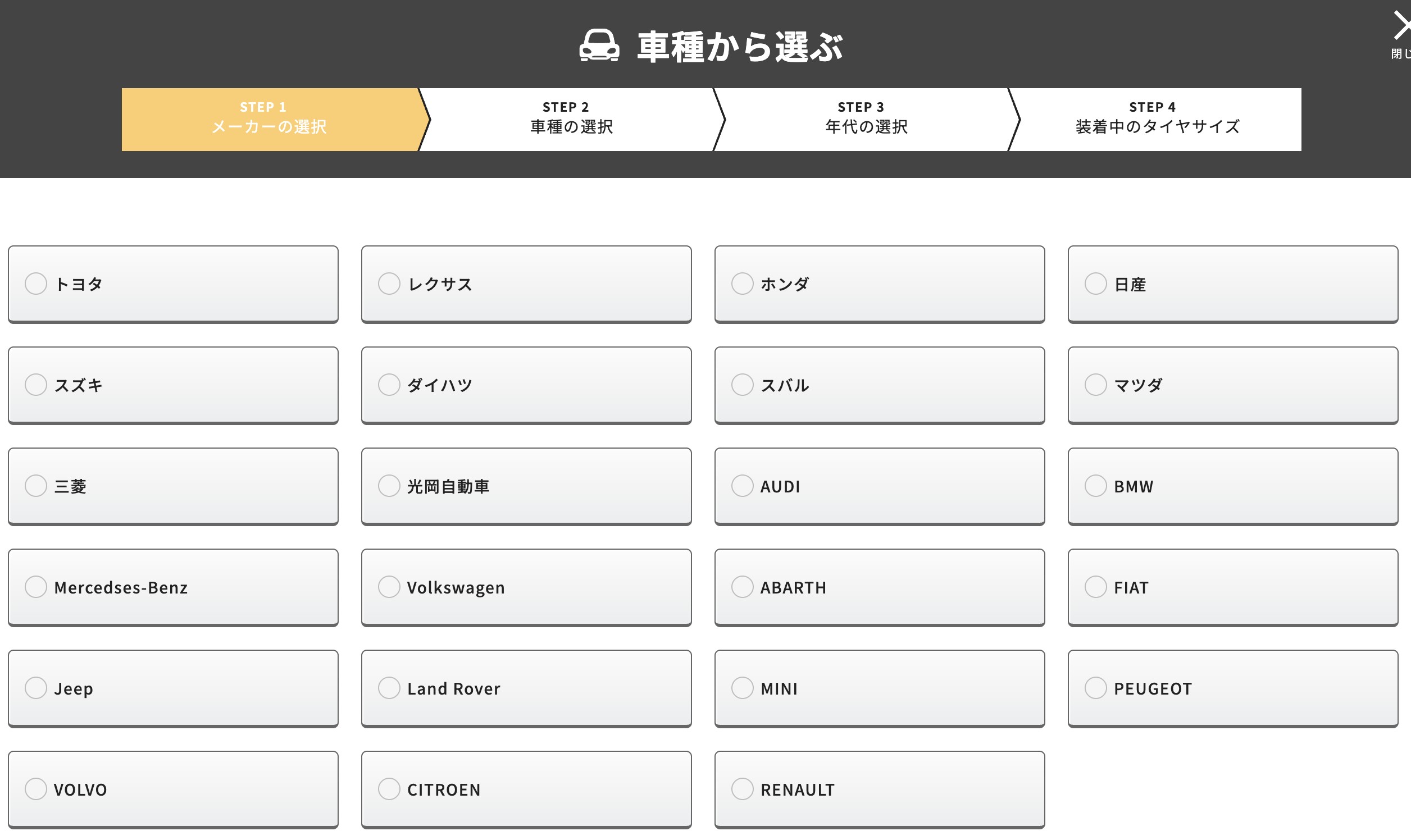 1)車種・サイズから探しやすい