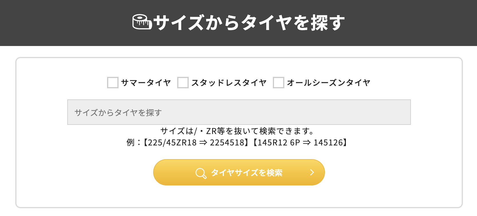 対応するタイヤを検索・購入できる