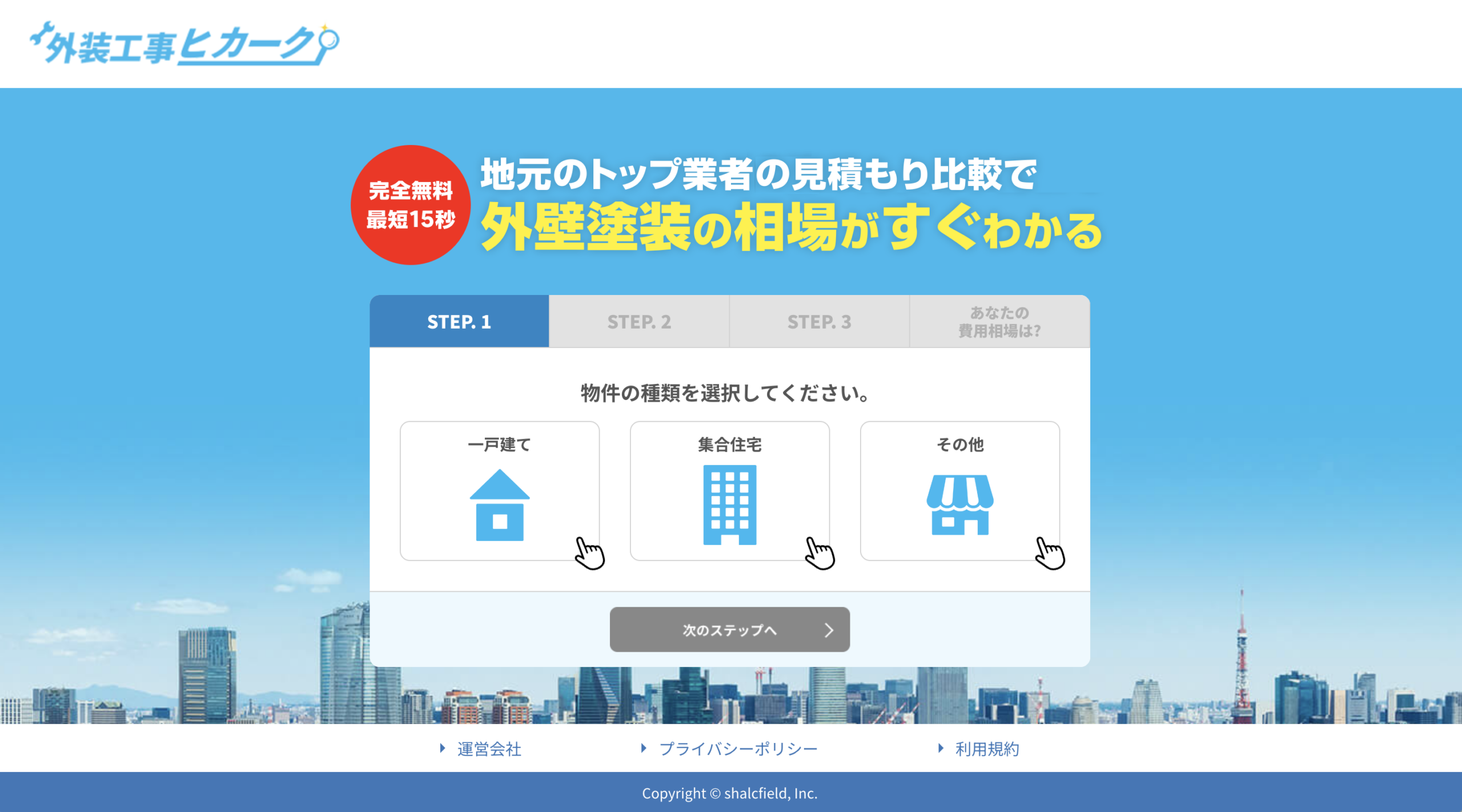 外装工事ヒカークは、利用者が「最適な業者と出会う」ことにフォーカスしています。