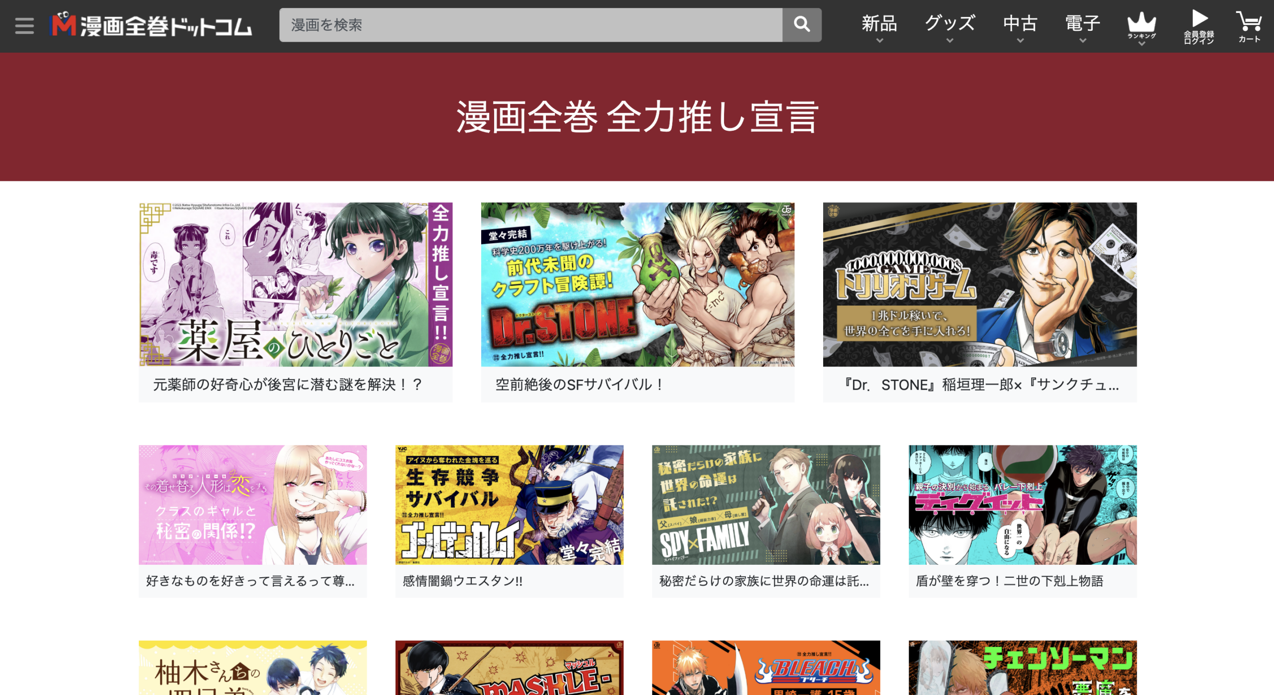 全巻まとめ買いに特化した通販サイト「漫画全巻ドットコム」です。