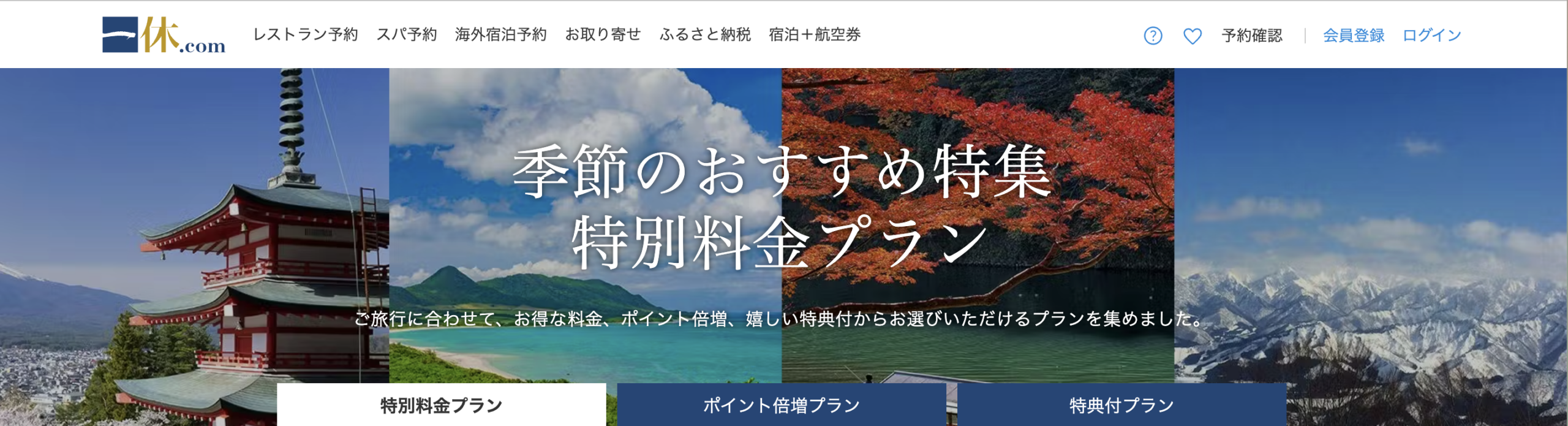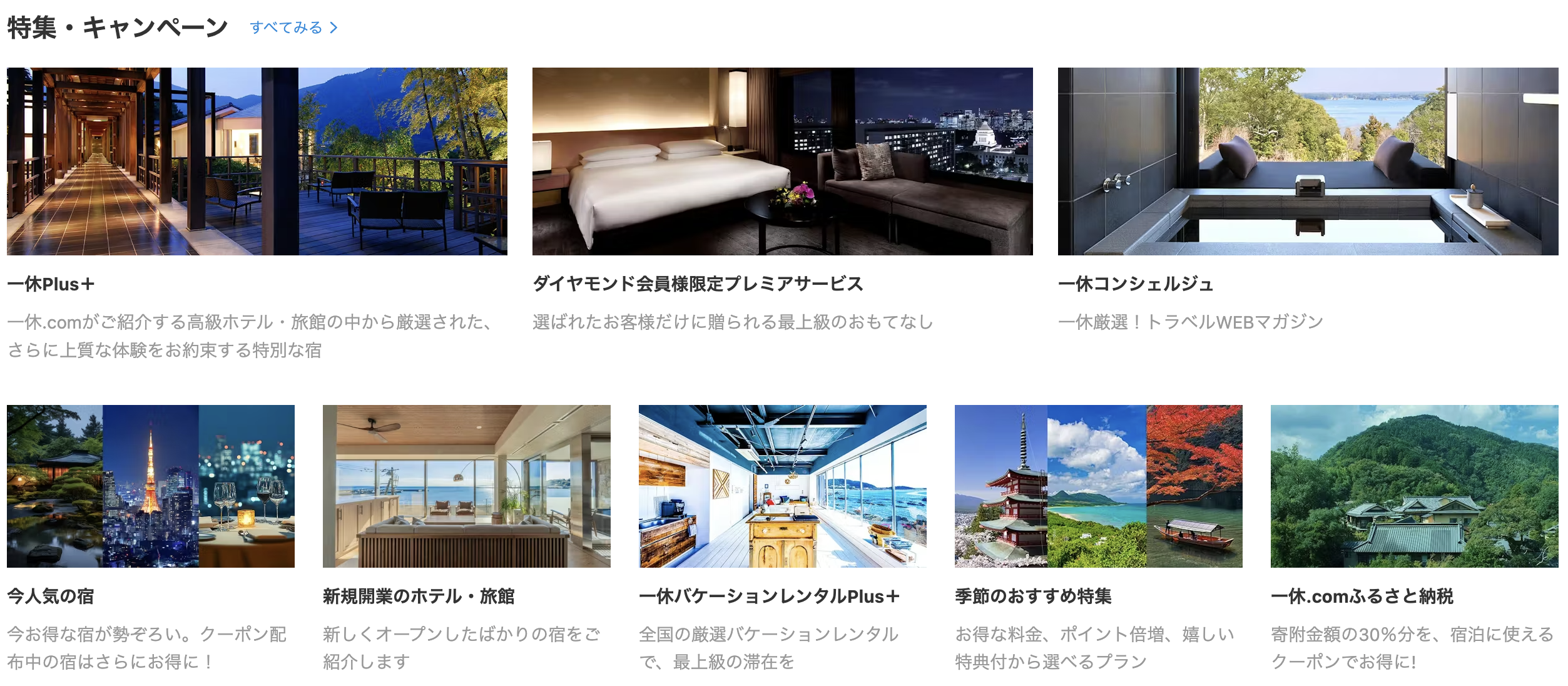 厳選された宿泊施設やレストランを扱う「一休.com」です。