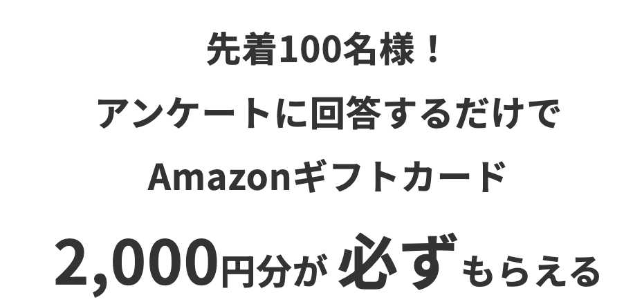 新規会員登録キャンペーン実施中で、条件達成でAmazonギフトカード2,000円分をプレゼント(先着100名/月)となります。