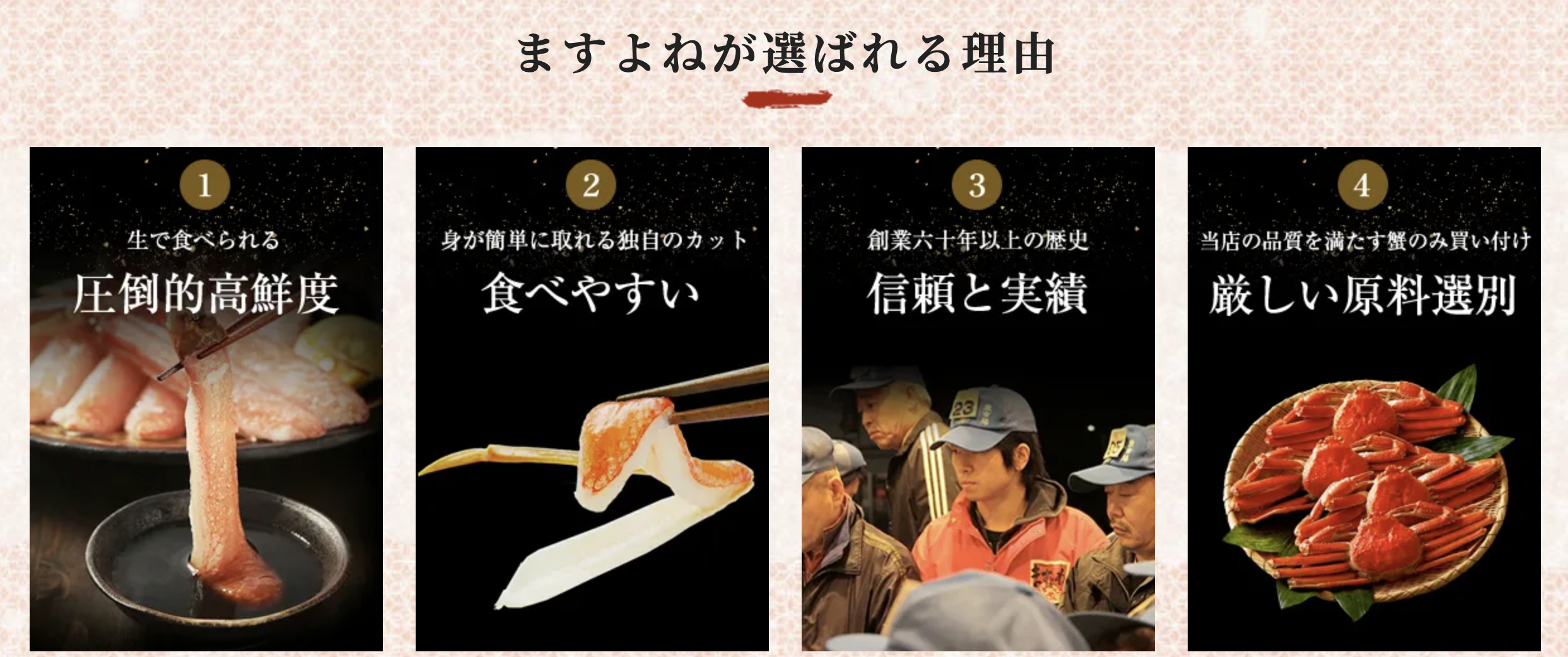 越前かに問屋ますよねは、鮮度・品質・使いやすさを大切にした海鮮通販店です。