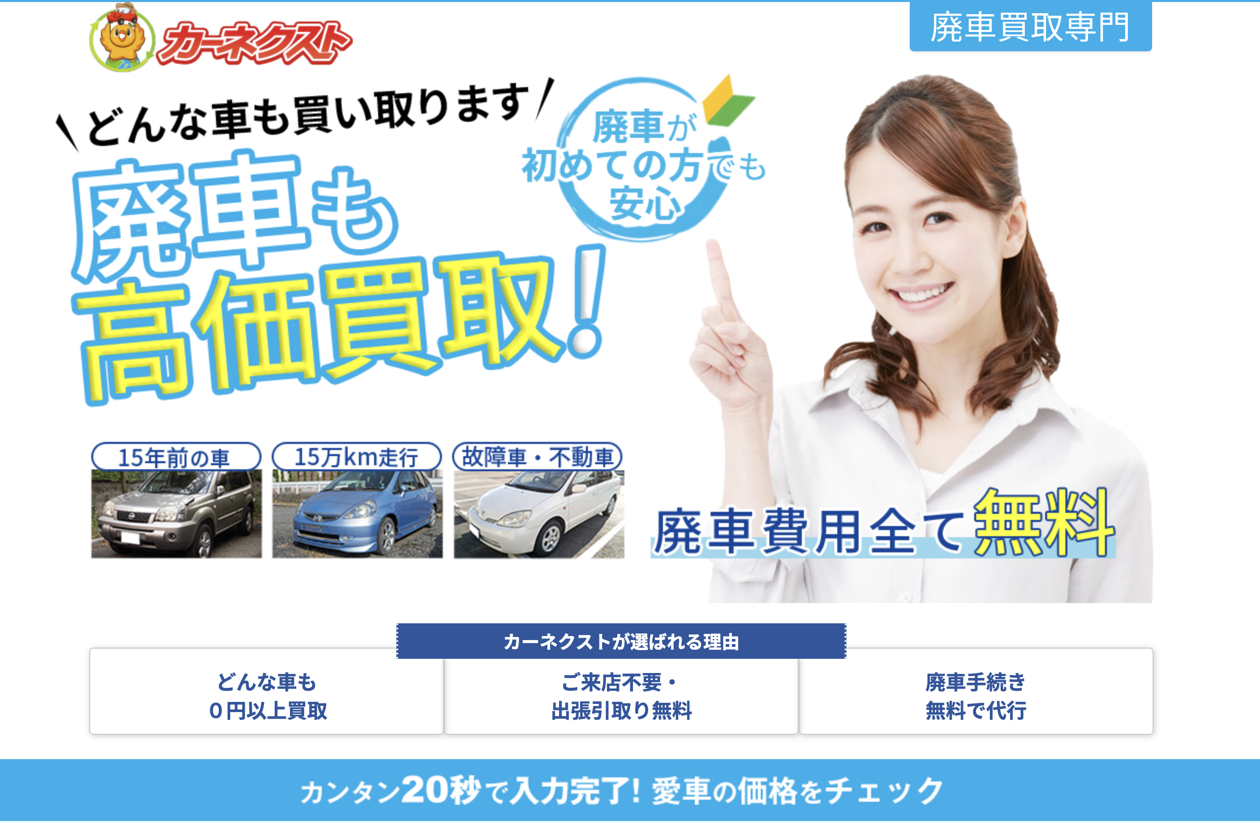 古い車や不動車、廃車予定の車にも対応しており、引取り・手続き・還付手続きまで無料で任せられます。