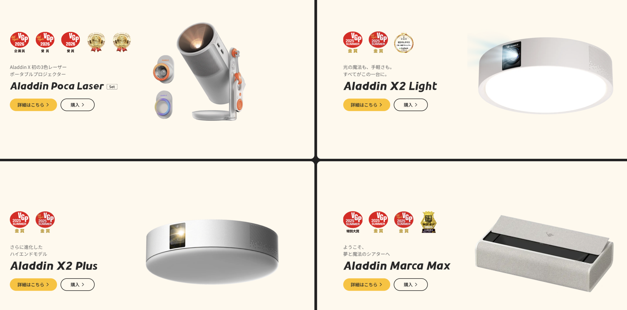Aladdin Xは、空間設計と映像体験を両立したい方に検討されている家庭用スマートプロジェクターです。価格だけで判断するのではなく、設置性や使い方まで含めて比較することが大切です。