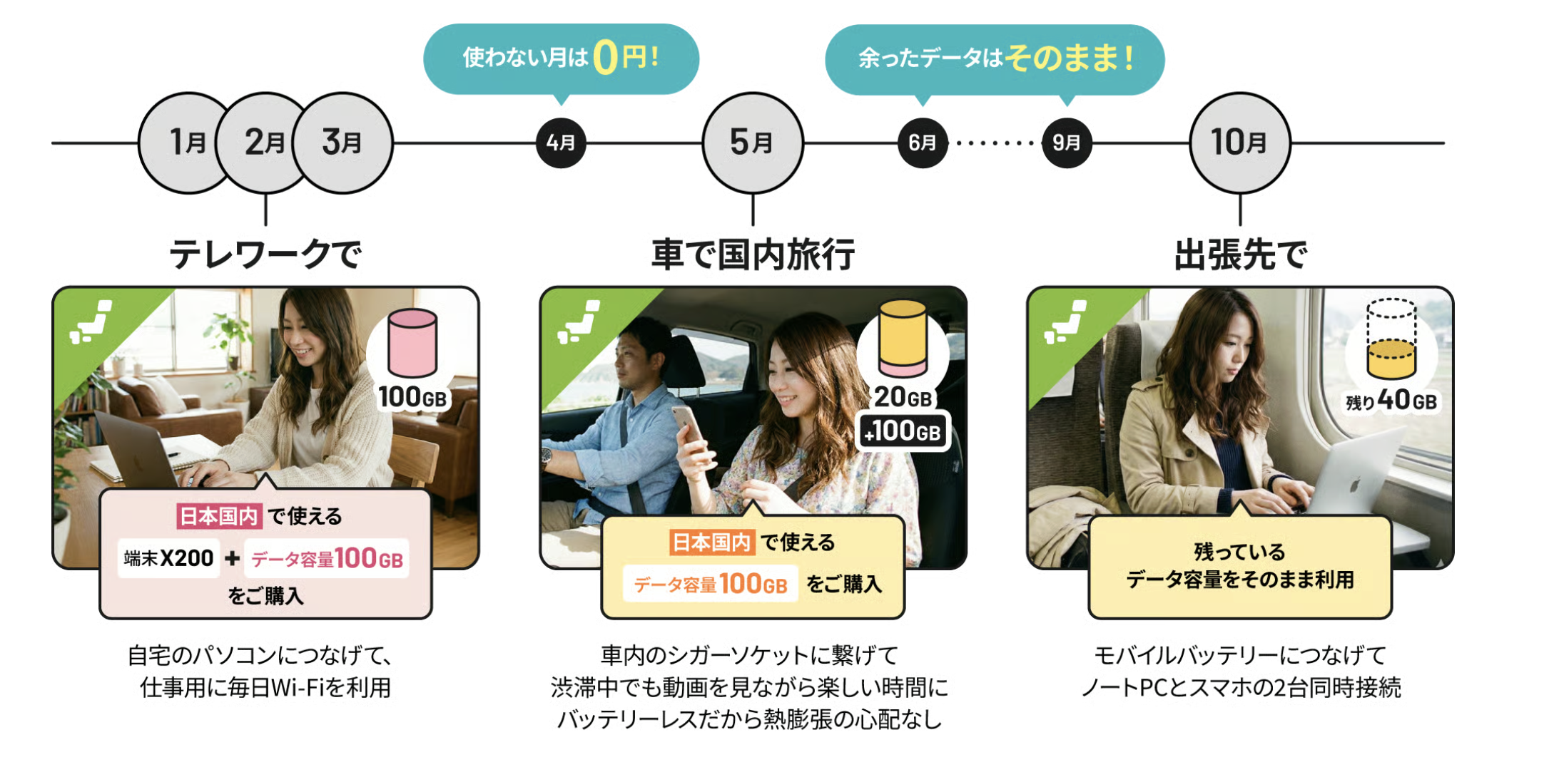 たとえば、春休みや夏休みなど人の移動が増える時期には、帰省先や旅行先、仮住まい先でネット環境が必要になることがあります。そんなときに、重たい契約を新しく組むのではなく、必要なタイミングだけ活用しやすいのは大きなメリットです。